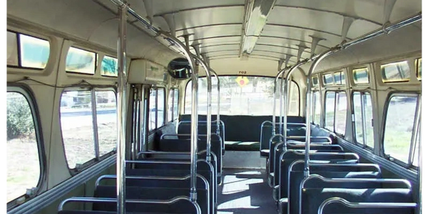 This bus was purchased from Neil Burison, a private bus fan. 702 the 2nd was an unusual bus. It was a 5303 first generation built to run in Hawaii and geared very low with f 4 speed transmission used for touring and sightseeing. I made this buss serviceable but never got time to do all the body work.